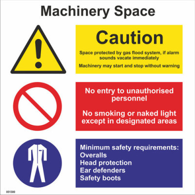 Znak: Machinery space 300x300mm White Vinyl