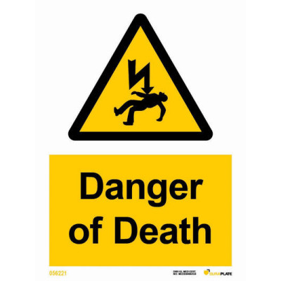 Znak WSS: Danger of death 200x150mm White Vinyl